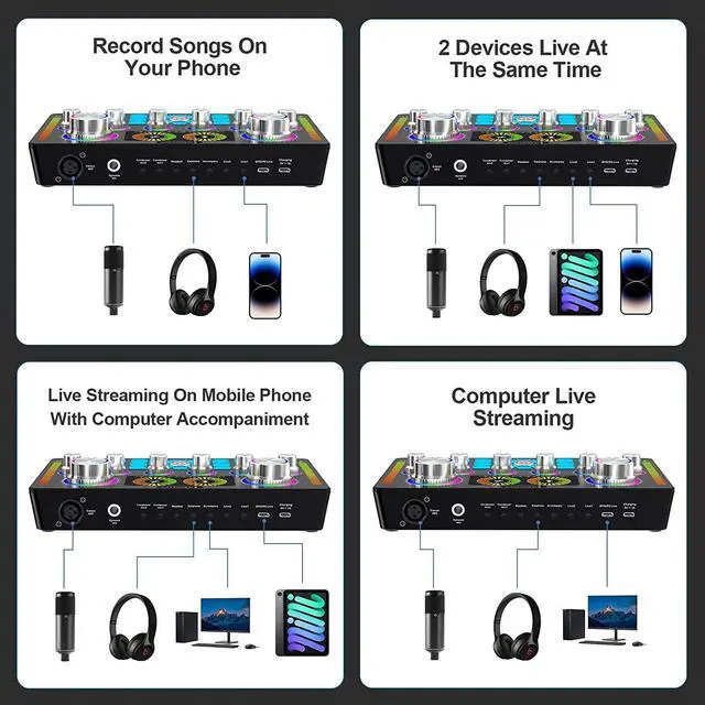 XISONO sound card is perfect for live streaming, broadcast, podcast, singing, music recording, and gaming at home, office, or school. It delivers superb sound quality and offers intuitive and full control that suits the needs of both beginners and seasoned broadcasters.