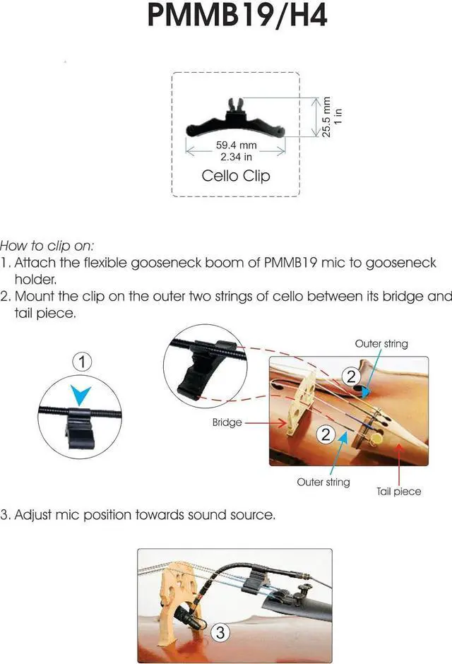 Clip-On microphone for Cello that compatible with Shure, compatible with Sennheiser, compatible with Audio Technica, compatible with AKG bodypack transmitter.