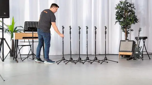 Complete Mic Stand Set: Includes six microphone boom stands with a convenient carry bag