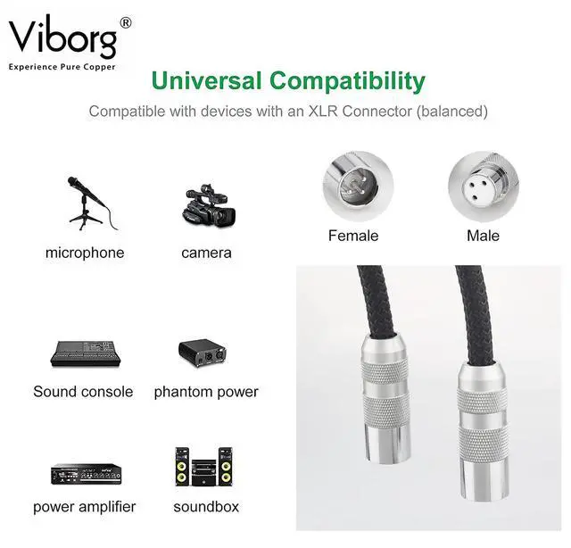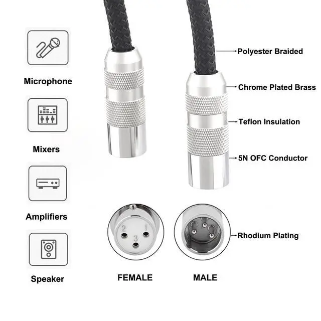 ShieldingWith 100% full shielding made of Pure Copper, this XLR cord provides maximum protection against electromagnetic interference and other external disturbances. The shielding effectively eliminates any unwanted noise or hum, ensuring a crystal-clear audio transmission.