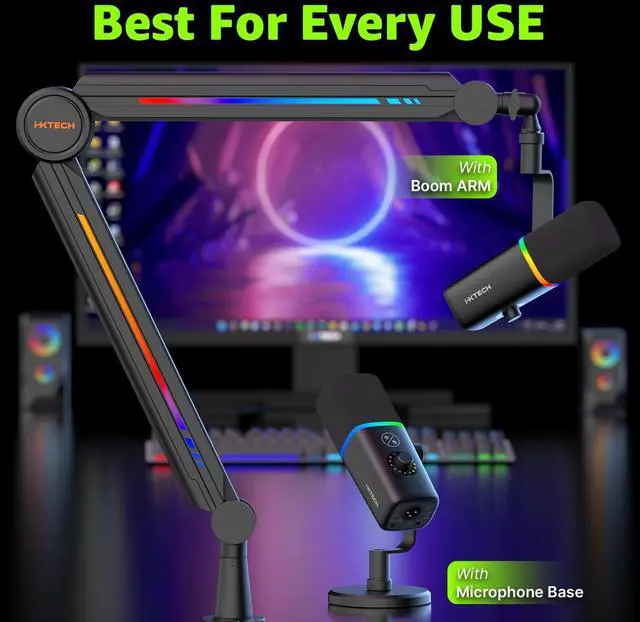 Clear And Balanced Sound: We designed our condenser microphone for PC with streamers and gamers in mind. The USB microphone for pc comes equipped with a Cardioid pickup pattern to reduce background noise and a shock mount with a detachable pop filter to elevate your streaming, recording, and podcasting audio quality