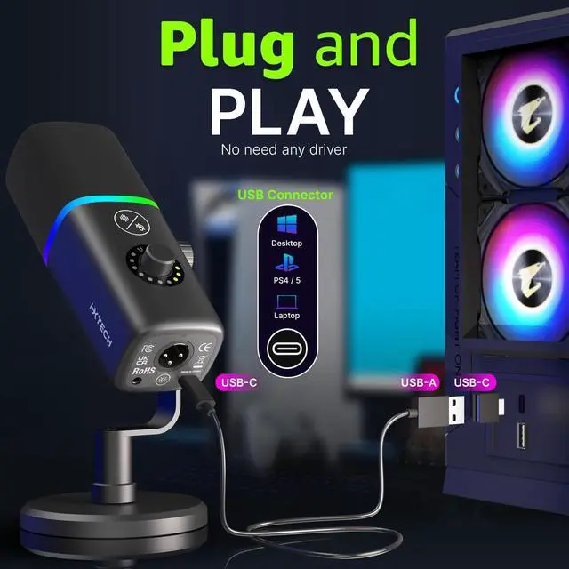 Plug And Play: Our USB microphone for PC connects to a wide range of devices without any hassles. Compatible with PS4, PS4 Pro, PS5, Desktop PCs, Macs, Laptops, and more through the included USB C cable. Just plug, play, and enjoy! (Not compatible with Xbox)