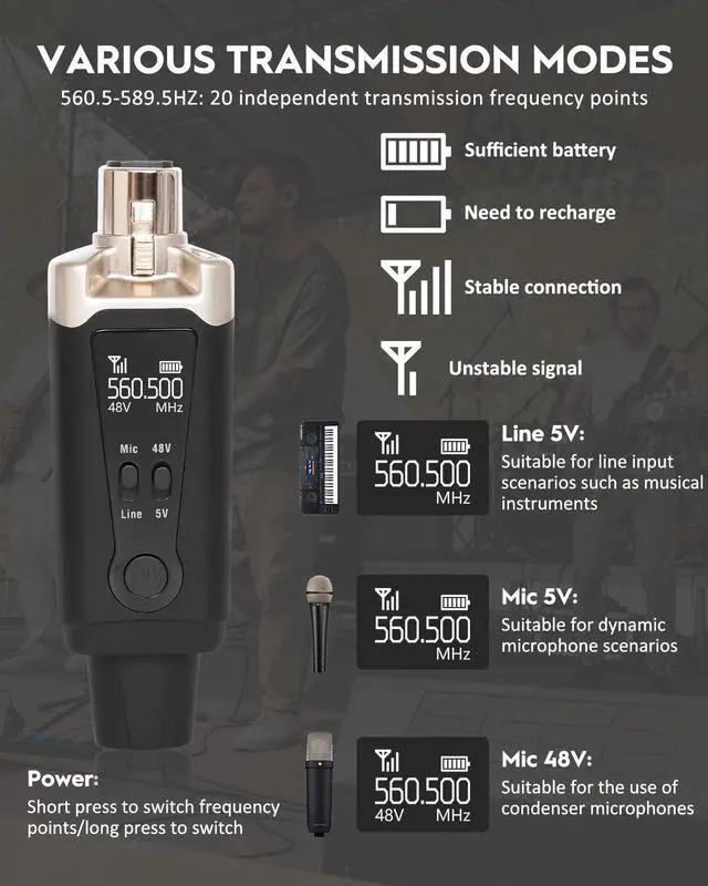 Low Latency / 16 Frequency Points: Support 16 sets in the same place simultaneously. Works with any dynamic/harmonic microphone, Audio mixer, or PA system, and provides stable and reliable wireless transmission.Less than 6 ms latency(normal), Simultaneous broadcasts on 16 channels, perfect for venues, weddings, and mobile DJs. Any question click on "YOUR ORDER" options click the contact seller".