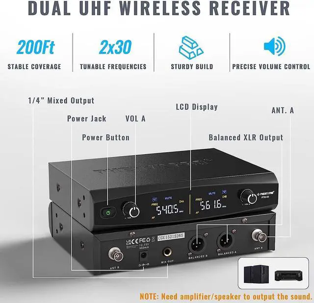 30 ADJUSTABLE FREQUENCIES: State-of-the-art circuitry designs 2x30 adjustable frequency groups for this microfono inalambrico set in 500MHz band, allowing up to 30 units to use at the same time without interference. You can also enjoy the freedom of changing frequency if preset frequency failed. Operating distance is up to 200ft in open space line of sight