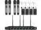 This wireless microphone system features 8 channels with Metal Cordless Microphone bodypack transmitters and lapel mics suitable for various events like weddings, parties, meetings, and karaoke.
