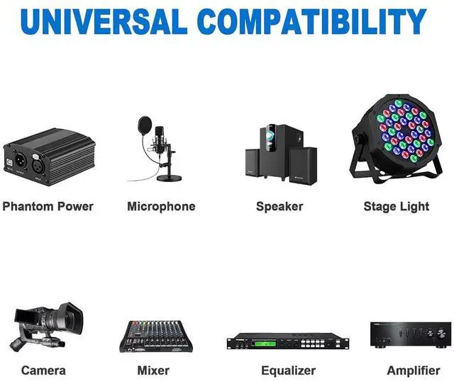 Widely Application The XLR cables are perfectly compatible with equipment has 3-pin connectors such as microphones, stage lighting, DMX lamps, mixing boards, power amplifiers, studio harmonizers, speakers, patch bays and so on. In addition, these microphone cables are widely used at stage speakers, club stages, KTV, and home theater. 120+ Ohm impedance.