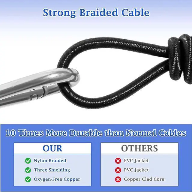 Flexible Nylon BraidedMicrophone cable built with nylon braided housing enhances flexibility and durability. Bend test up to 20,000+ times without reducing microphone cord flexibility and ensure its optimal performance. Lint and fluff free; Tangling free to make wires wrapping up an easier job.