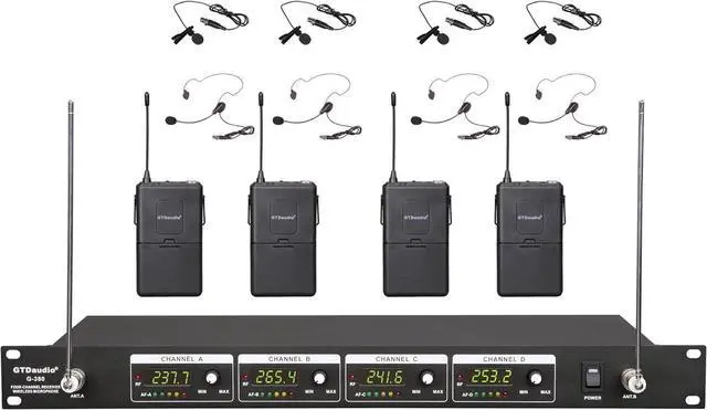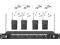 4 Channel Receiver with 4 Belt pack transmitters & lavalier, headset Mics