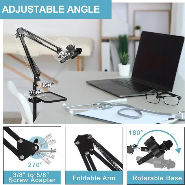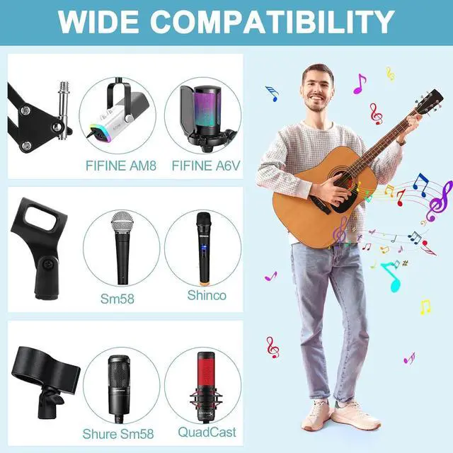 Adjustable Height and Angle: the mic stand features a detachable design with a main pole that can be disassembled into 3 sections; The adjustable height ranges from 15.75 to 48.43 inches (40-120 cm), and the extension rod length is 27.56 inches (70 cm), suitable for different performers; The stand also supports 360° rotation, and the 180° rotatable mic clip ensures easy angle adjustments for mic positioning every time