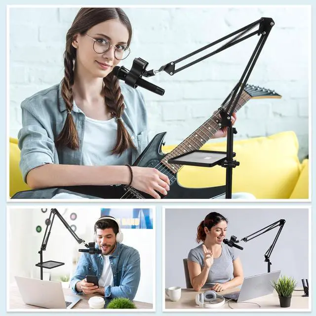Easy to Use and Convenient: the portable mic stand features a detachable design, allowing for quick assembly and use; The package includes a carry bag, where all components can be stored; No matter where you are, you can easily assemble the stand and enjoy true portability; Additionally, this floor mic stand set includes a small tray to keep accessories like phones, capos, small mixers, lyric sheets, or other small parts in place, offering ultimate convenience