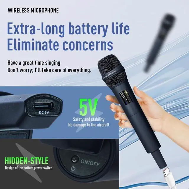 STURDY BUILD : Metal UHF wireless microphones are designed to last, suitable for heavy use. The wireless karaoke microphone system includes AA rechargeable batteries for your convenience. Can be charged for use, and can also be used with ordinary AA batteries when the rechargeable battery is out of power.