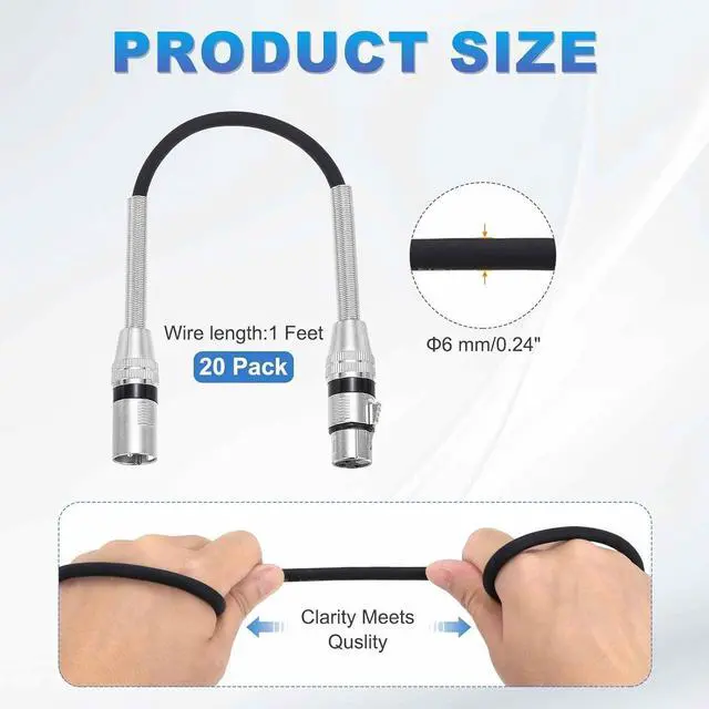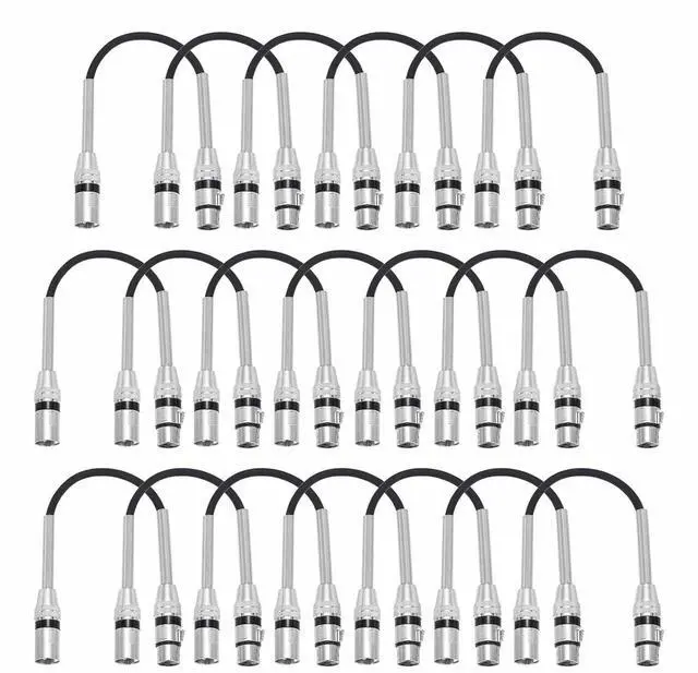 XLR Male to Female Microphone Cable; Wire length:1 Feet; Wire outer diameter: 6 mm/0.24 inch; Color:Black; 20 Pack of XLR Speaker Cable