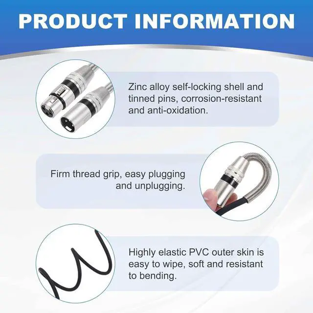 APPLICATION: These XLR cables are suitable with a variety of professional audio equipment and are suitable for connecting microphones with 3-pin XLR connectors, mixing boards, studio monitors, speaker systems. Whether it is at home, outdoors, parties, KTV, professional sound reinforcement, studio recording, home theater, or other occasions, it can be easily controlled.