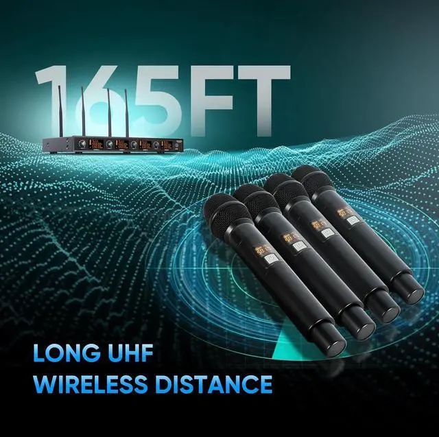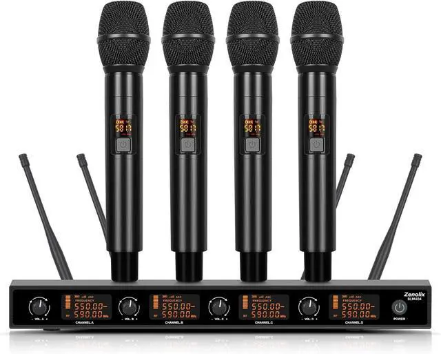 Stable Wireless Transmission - The karaoke wireless handheld microphone set is equipped with efficient wireless transmission technology with 5 adjustable frequencies per UHF mic. Channel1: 552.5-552.9MHz, Channel2: 561.5-561.9MHz, Channel3: 574.5-574.9MHz, Channel4: 581.5-581.9MHz. Zenolix wireless receiver transmission distance of up to 165 feet can experience unrestricted indoor and outdoor presentations.