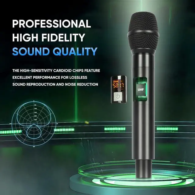 Clear & Pure Sound Quality - With a professional cardioid pickup capsule, the wireless microphone system can effectively isolate the main sound source and reduce background noise, which enables each wireless microphone to capture and transmit smoothly without dropouts, hiss, or feedback and deliver stable, pure, and robust sound quality. The bluetooth microphone wireless is ideal for karaoke singing, weddings, parties, and public speaking.