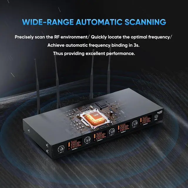 Wide-Range Auto Scan - The microfonos inalambricos professional helps quickly and precisely locate the optimal available frequency and achieve automatic frequency binding within 3s through IR, providing excellent performance. Zenolix wireless microphones for karaoke allows you to effortlessly resume from the last set channel after disconnecting and reconnecting the power cord.