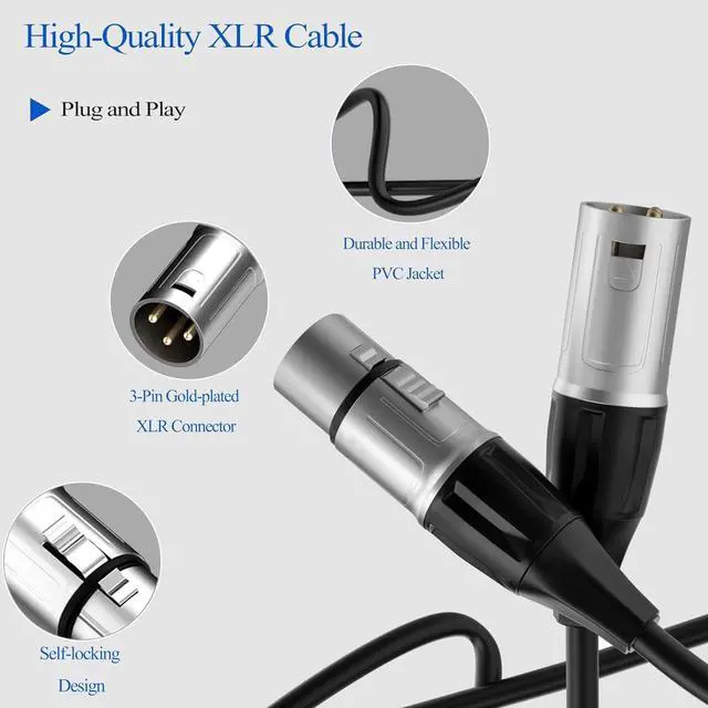PLUG AND PLAY - This XLR microphone cable is user friendly. With plug and play design, you can easily connect microphone with 3-pin XLR devices by balanced XLR cable. Features a self-locking design allow it will grip your devices firmly and securely and never get loose when you move.