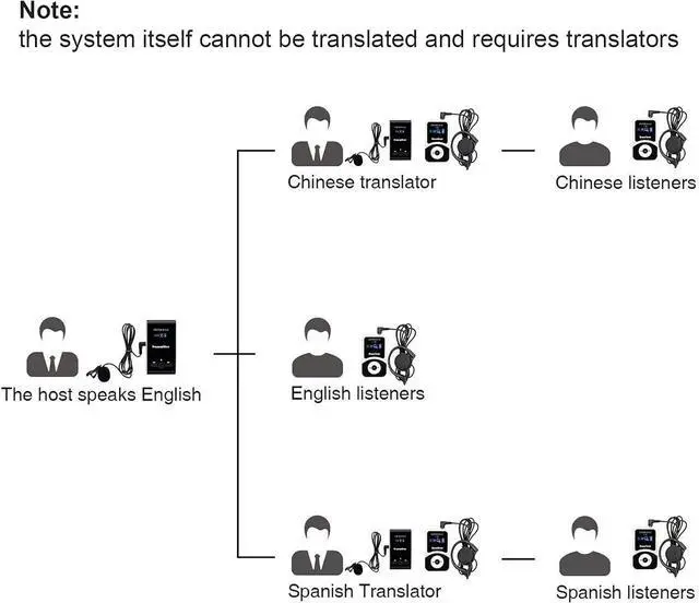 Church translation system has a wide working range; as long as it does not exceed 164 ft/50 m; the receivers can hear the clear voice from the transmitter; you can also adjust the volume of the receiver freely when listening