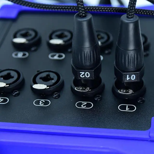 8 Channel Splitter: Connects 6 different channels to the stage box. The box connectors are XLR female (or 1/4 female), which is a 2-in-1 type socket.