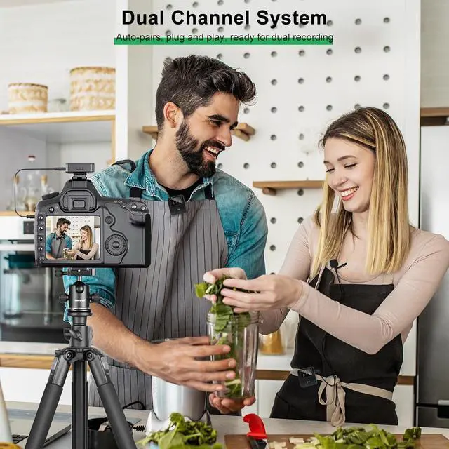[Dual Channel Auto-Pair System, Plug & Play] Effortlessly connect up to 2 transmitters with this wireless lavalier mic system, which automatically pairs TX and RX when powered on. Simply connect the receiver to your device and start recording instantly with our plug-and-play solution. Its the easiest way to achieve professional audio capture