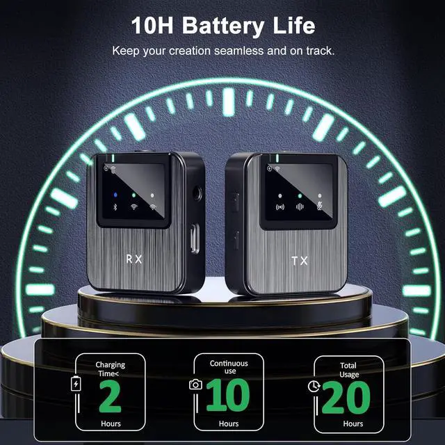 [10H Nonstop Creation] Enjoy up to 10 hours of seamless recording on a single charge. Recharge fully in under 2 hours with the included cable. Perfect for continuous content creation on YouTube, TikTok, Instagram, and more
