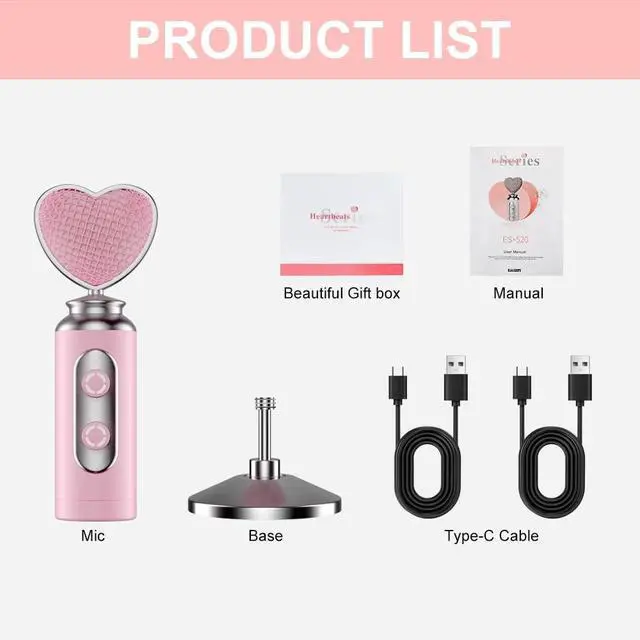 Package includes: Type-C cable, stand, cardioid microphone, instruction manual