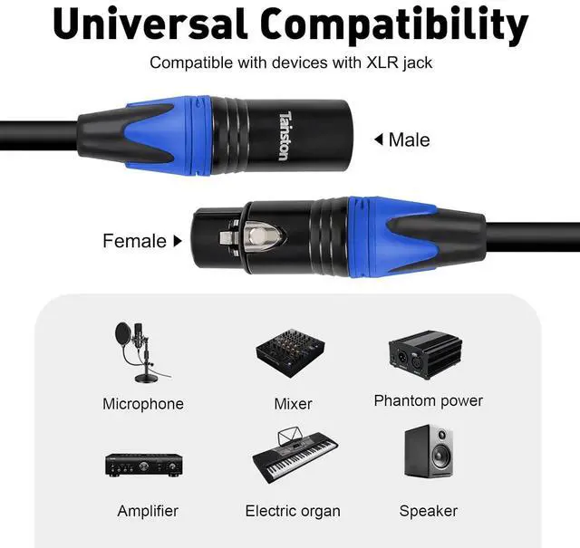 Wide CompatibilityOur XLR Microphone cable is perfectly compatible with devices that have 3-pin connectors,Such as microphone,harmonizer,digital audio mixer,patch bay,preamplifier, speaker,amplifierrecording studio and more.Widely used at Stage Sound,KTV,Professional Sound Reinforcement,Home Theater and other environment.Enjoy your music life anytime,anywhere at home,outdoors,at parties,recording,and on other occasions.