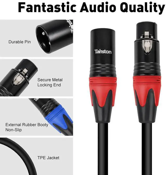 Self Locking DesignOur balanced Microphone cable uses heavy-duty zinc alloy housing,self-locking male to female connector design which is easy to pull out, insert, and firmly lock.Preventing any looseness or disconnection during movement.The 3-pin connector offering resistance against oxidation and corrosion,improve the stability of signal transmission.