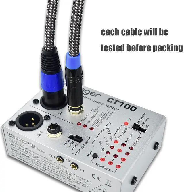 Package Items The package include two 6.35mm to XLR male cable, each cable is 50 feet long. One cable has red rings and the other has blue rings, with different color rings, you will not insert the connector into wrong jack by mistake.