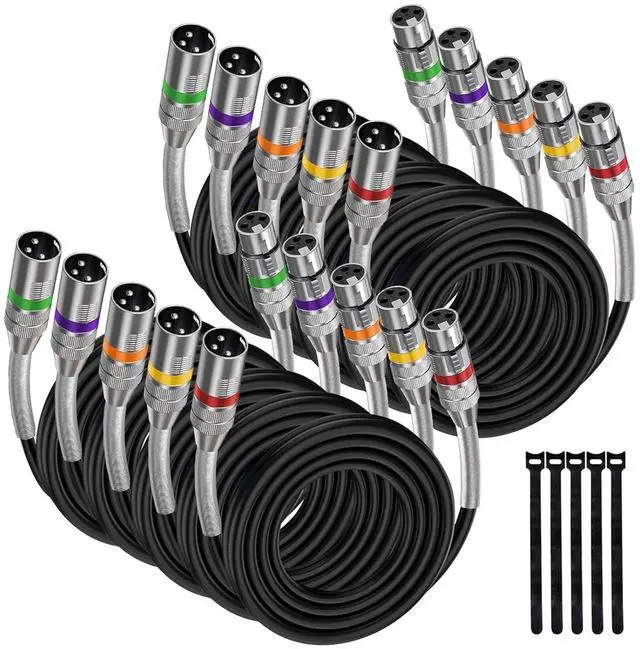 Various XLR Mic Cable Lengths & Multi-pack Options:Our Rycvaky XLR cables here have 1 feet and 3 feet to meet your various needs .We Provide 2-pack, 6-pack, 10-pack colored XLR Microphone Cables for easier color matching and tracking. Also,our cables comes with 5 velcro to organize itself, no worry about mess when use them.