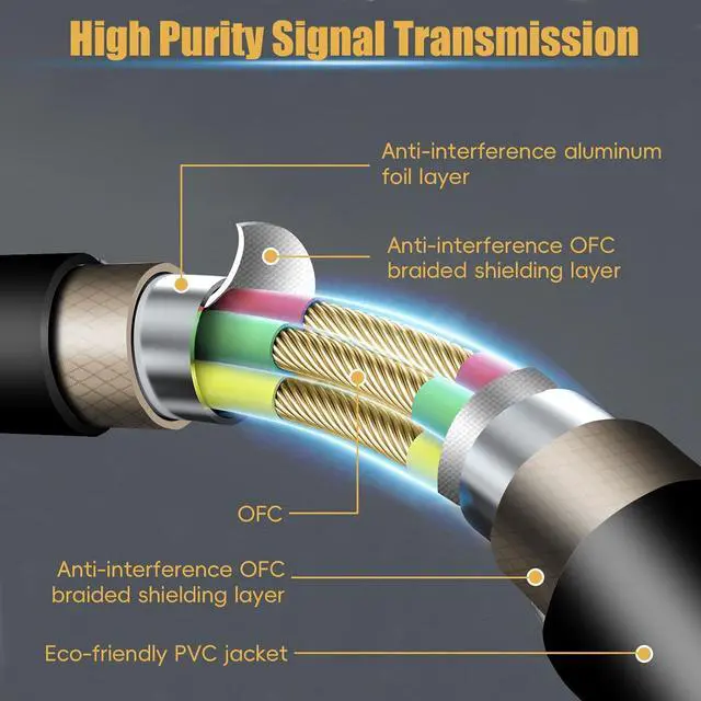 Superior High Fidelity: Our XLR cables equipped with a combination of oxygen-free copper conductor and multiple layers of shielding, including cotton, copper, carbon fiber, 6mm High Soft PVC jacket, and PE coating. they can effectively shield against 99% of clutter and static interference, eliminating noise while also ensuring a high-fidelity sound quality and achieving maximum hum cancellation even when moved around and the signal remains clear and strong.