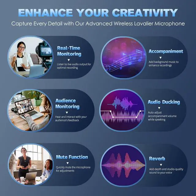 Enhance Your Sound with Professional Features - Elevate your audio experience with advanced features like audio ducking and reverb. The audio ducking function lowers the background music volume when you speak, keeping your voice the focus of attention. Add reverb to enrich your voice with studio-quality effects. Perfect for creating professional-sounding content.