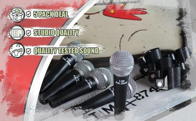 THE ULTIMATE WIRED MICROPHONE IN STAGE PERFORMANCE: Boasting a live, full-range response and a deep bass, this pack of 5 cardioid dynamic microphones offer a smooth and natural sound and will work perfectly for any live music performance: from peaceful parties and jazz clubs to karaoke singing, vocals, recording, podcasting, and loud stages. Their unidirectional design makes them sensitive to sound from one direction only and promises a high level of GBF (gain before feedback).