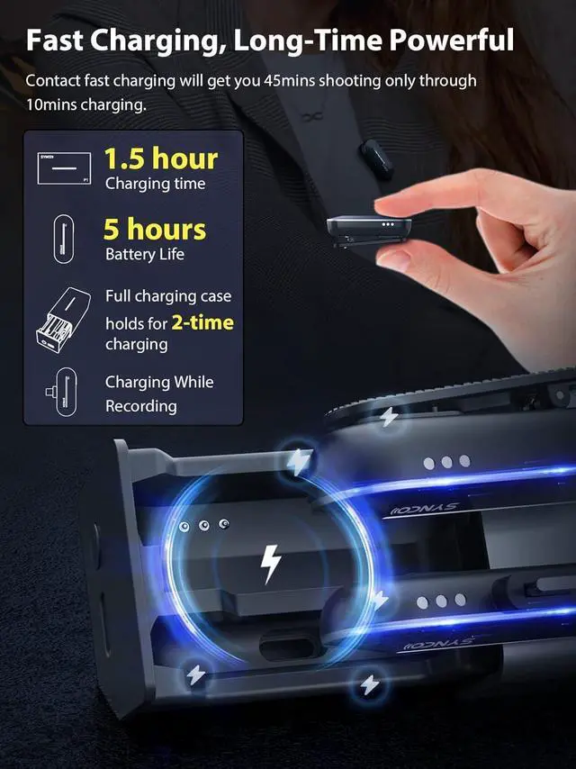 With Quick-Charging Case, Long-time PowerfulContact fast charging will get you 45mins using time only through 10mins charging. SYNCO P1 P1T Wireless Smartphone Lavalier Microphone series delivers 5 hours of recording time on a single charge and the charging case holds two charges, worry-free for long-day outdoor shooting