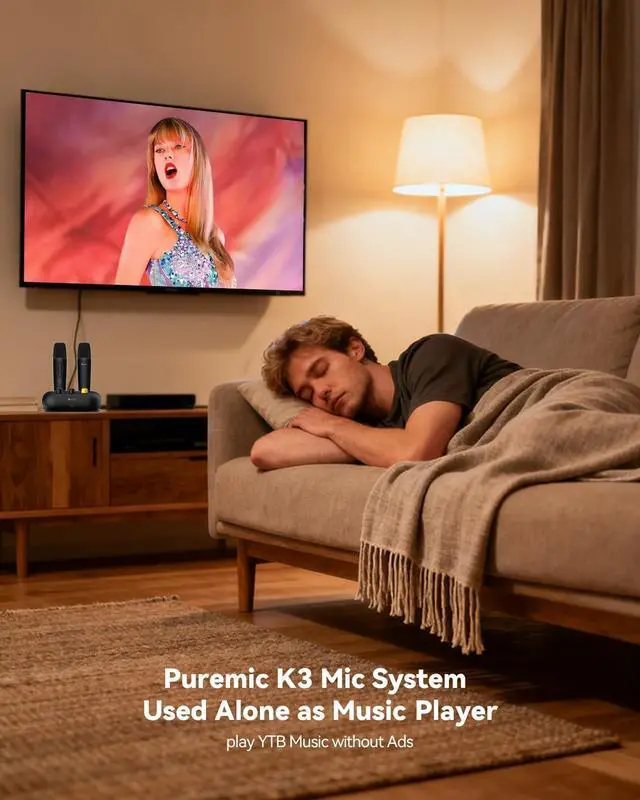 Free Forever YTB Songs w/o Ads: The Puremic K3 microphones system comes equipped with built-in YTB software, allowing you to stream and sing all the songs available on YTB for free forever. Enjoy multi languages songs with endless music options at your fingertips!