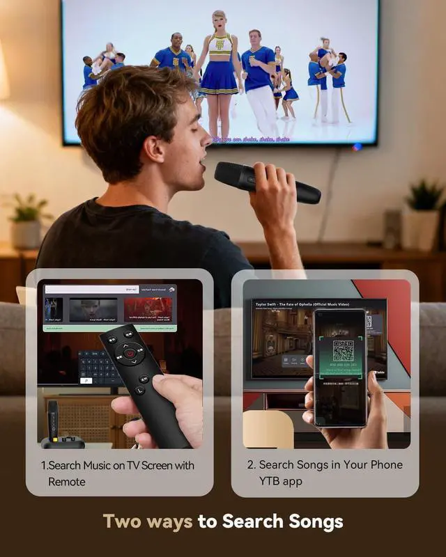 All brands/Types of TV Compatibility: Pair your home TV with our Android Karaoke Machine via HDMI cable and AUX to speaker connection and access your favorite songs. Turn your TV room into a karaoke stage in seconds!