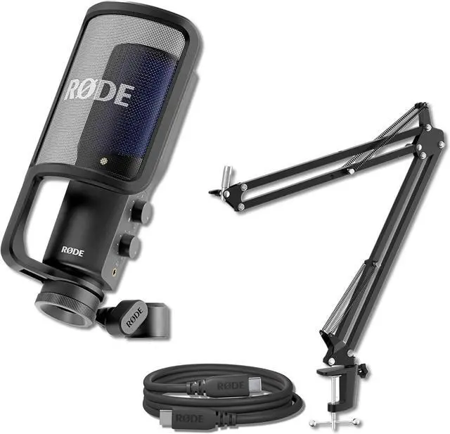 Includes pop filter, desktop stand, ring mount, and USB-C cable