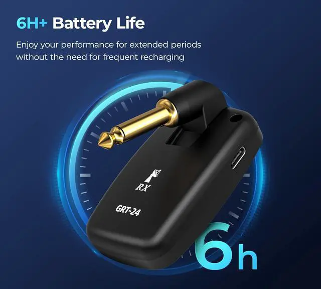 [Rechargeable Wireless Guitar System] Recharging Friendly with Dual-end USB C cable and Battery Indicator. Built-in battery with 6H working after only 2H fully charged, enough to enjoy the wireless freely in your gig.