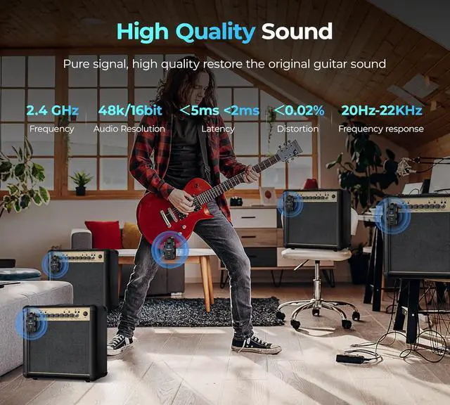 [Clear Quality Signal Transmission] High-Grade wireless system, more stable and high-quality audio transmission. Low noise, low latency, no interference, 50 meters transmission distance.