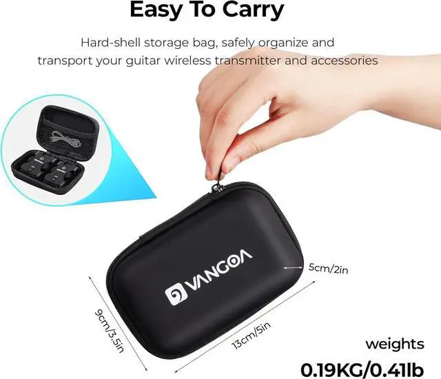 [Easy to Carry] The wireless guitar transmitter and receiver comes with a storage case, compact and portable design, easily fit into guitar cases, backpacks, or handbags. Dust and moisture protectionminimizes equipment damage and extends its lifespan.