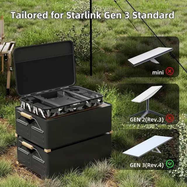 Tailored for Starlink Gen 3 Standard: This Starlink Case is especially designed for Starlink Gen 3 version. With customized internal sections to hold Starlink Standard dish and its accessories including the router, cables, power supply, kickstand all together easily!