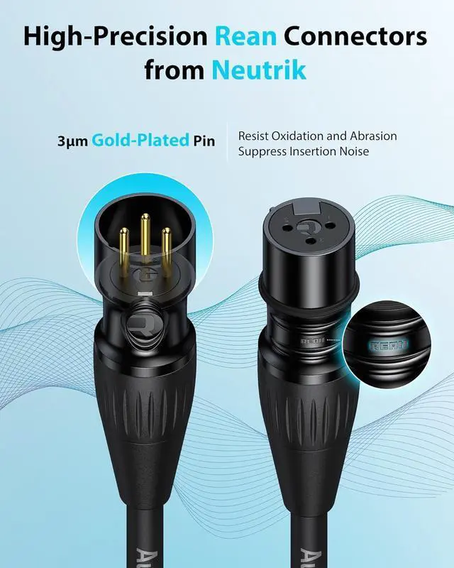 [Gold-Plated Pins] The gold-plated pins minimize interference and noise, ensuring superior sound quality, especially in XLR cables over 25ft.