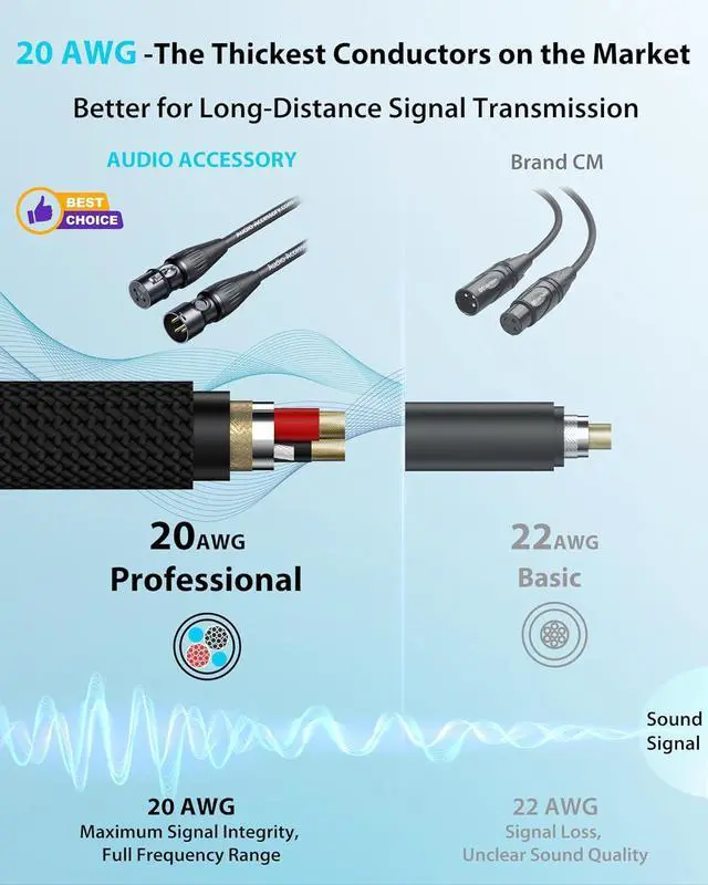 [Professional-Grade 20 AWG] Unlike the lowest level 23 AWG or even better 22 AWG cables, AA xlr cables 25ft is crafted with premium 20 AWG wire to ensure minimal signal loss and exceptional audio clarity.