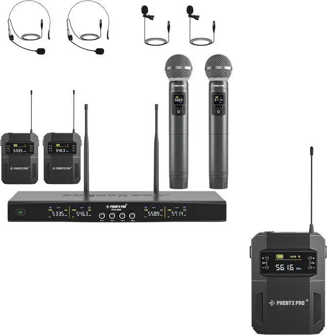 STURDY BUILD WITH DETAILSMetal UHF cordless microphone receiver and handheld microphones are designed to last, suitable for heavy use. Bodypack is built with high-quality components and comes with lapel microphone and headset microphone. Both dynamic handheld microphone and bodypack are equipped with a MUTE function for your convenience. This wireless headset lapel microphone system also comes with AA batteries