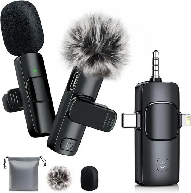 Wide Compatibility: The upgraded wireless microphone features a 3 in 1 universal receiver, making it unnecessary to use multiple adapters. It is compatible with Android smartphones, the wireless microphone for iphone (including iPhone 15), iPads, laptops, PCs, and cameras