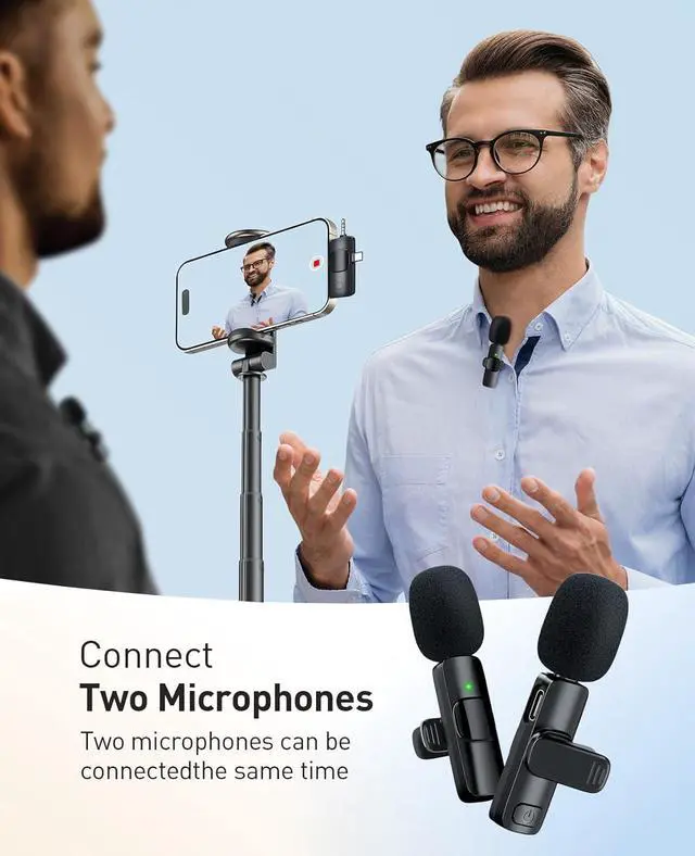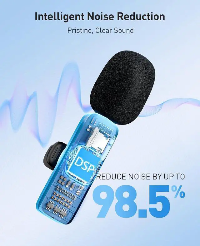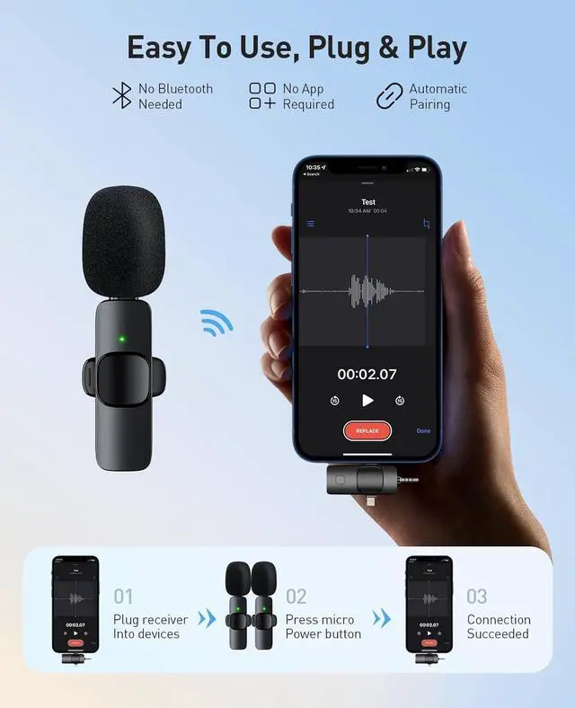 Plug and Play: The mini microphone doesnt require any apps or Bluetooth pairing. Just plug the receiver into your device and power on the wireless microphones, and they will automatically pair without any complicated setup. The built-in smart chip effectively captures sound from all directions, reducing surrounding noise significantly