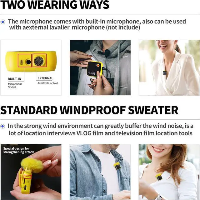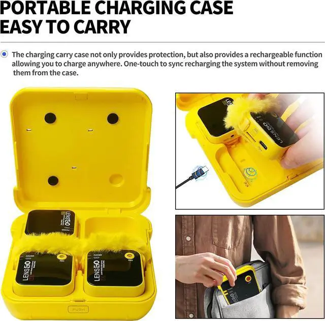 Long Work Time & TFT Real-time MonitorThe TFT screen monitors the receiver data in real time. The built-in lithium battery 400 mAh adopts TYPE-C charging interface/box charging, Independent charging box design combines charging and induction into one, convenient to carry and organize, charging time is 1.3 hours, 7 hours of long-lasting battery life, (TX recording can be used for 4 hours, separate TX uses 7 hours, RX uses 8 hours)