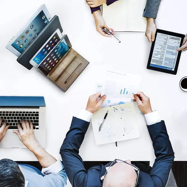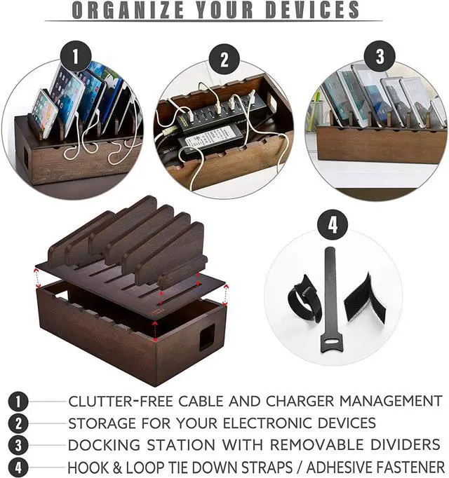 Versatile multidevice docking station : Included are seven removable tablet and smartphone racks, cable management slots, with built in anti-slip rubber feet