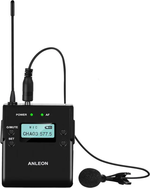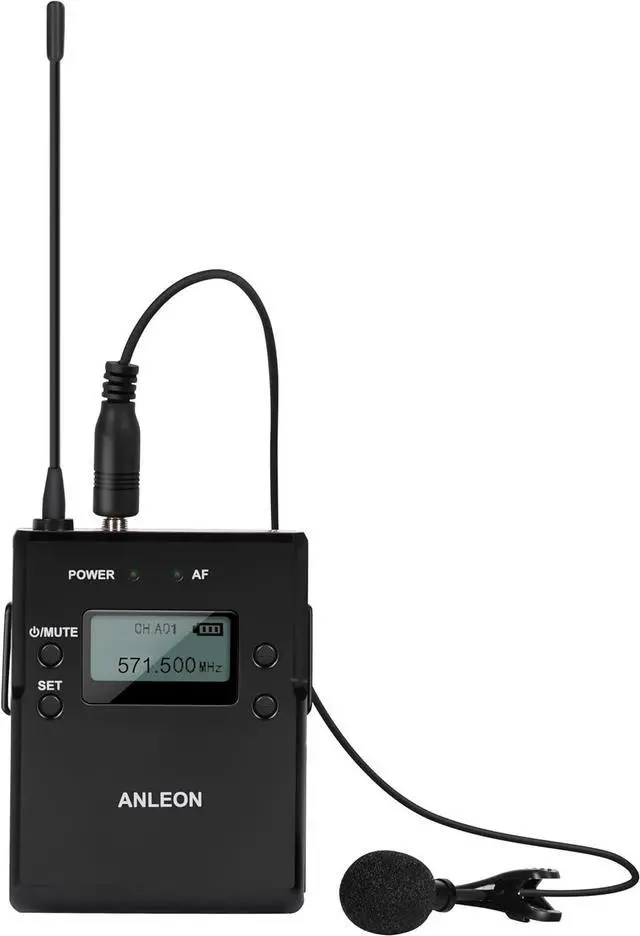 One miniature transmitter for the guide, clip-on microphone and socket for audio line signals (allows playback from an MP3 player/smartphone).