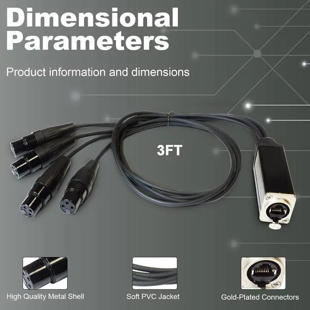 AFTERR-SALES-SERVICE: The package includes 1x 4-channel 3-pin XLR Multi-Network Splitter Ethernet Cable (3ft), 1x CAT6 Shielded ethercon cable (30ft), If you have any questions, you can contact us, we will help you within 24 hours